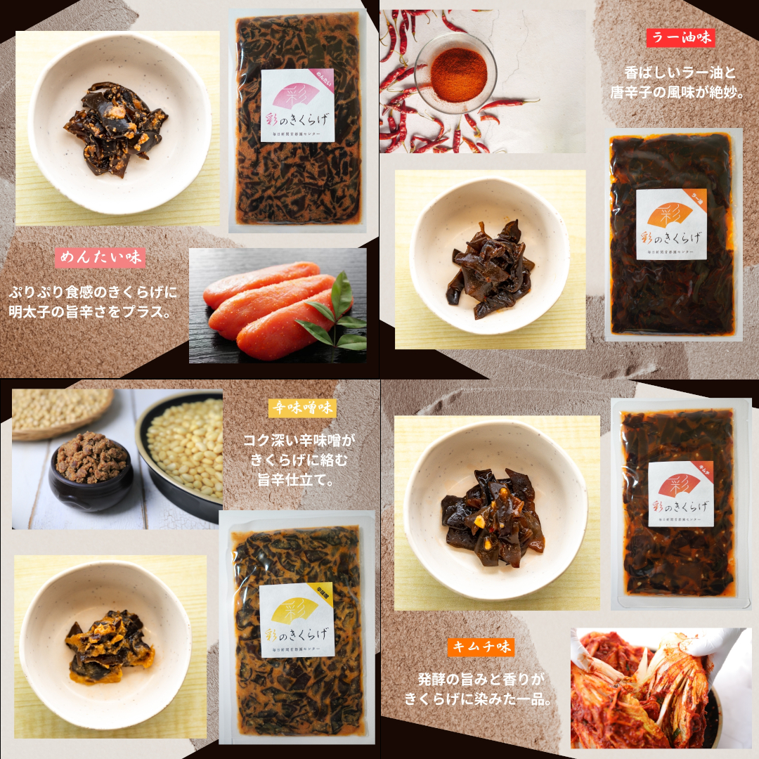 彩のきくらげ  めんたい味 ラー油味 辛味噌味 キムチ味         全4種類セット              【送料無料】