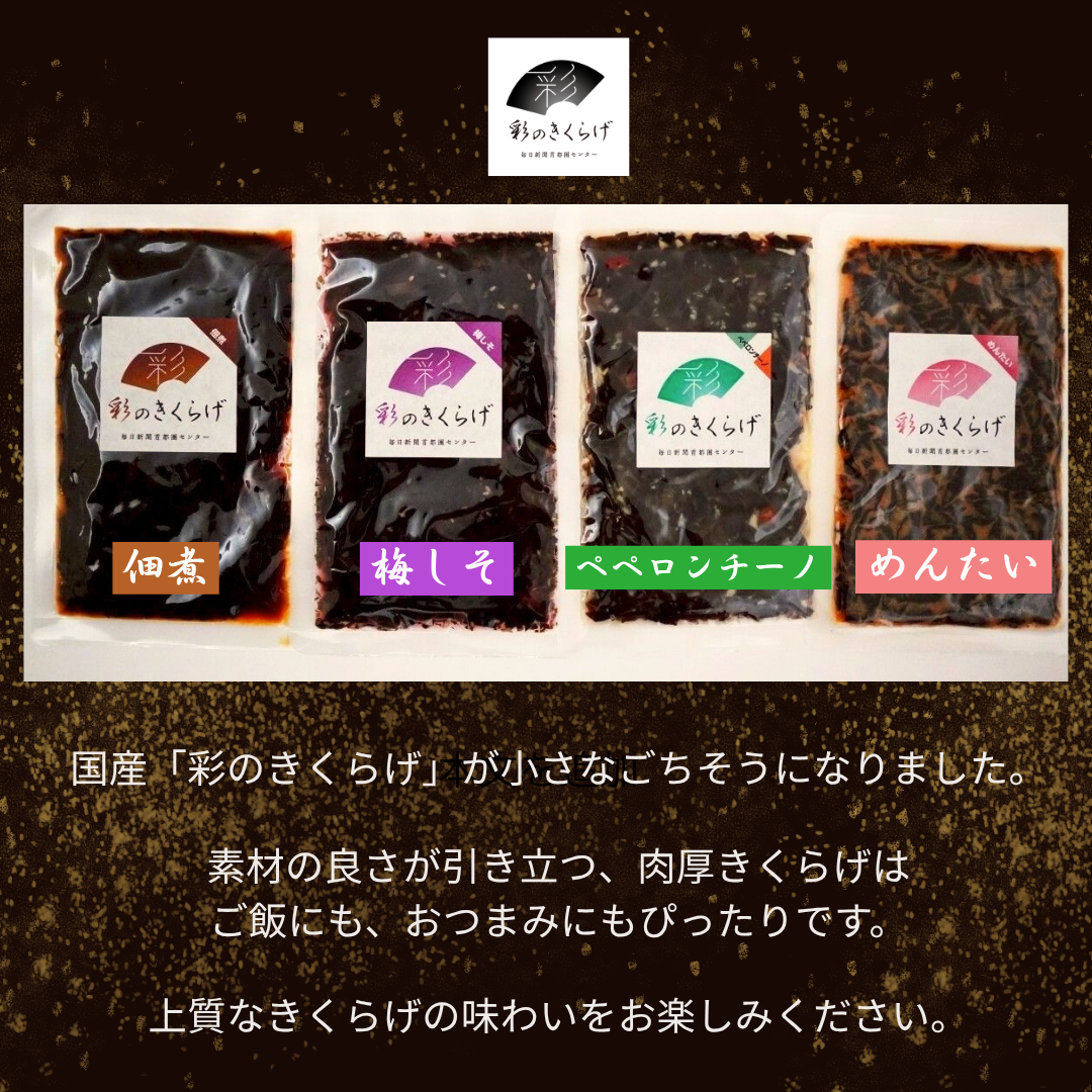 【新発売】 彩のきくらげ ペペロンチーノ味+お好きな味 2袋セット 【送料無料】 ツイートする シェアする 販売価格: 1,400円(税込み) 会員価格 (税込み) 通常価格 1,400円(税込み) 在庫 商品コード IKPP100 JANコード 4595558294309 ★彩のきくらげ ペペロンチーノ味+ペペロンチーノ味 2袋セット ★彩のきくらげ ペペロンチーノ味+佃煮味 2袋セット ★彩のきくらげ ペペロンチーノ味+梅しそ味 2袋セット ★彩のきくらげ ペペロンチーノ味+めんたい味 2袋セット 数量 - + カートに入れる 入荷通知メールを希望する 個別送料 0円